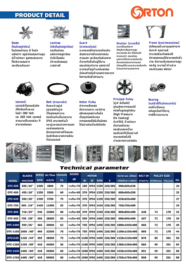 20 นิ้ว, 24 นิ้ว, 30 นิ้ว, 36 นิ้ว, 44 นิ้ว ทั้งรุ่น 220V และ 380V